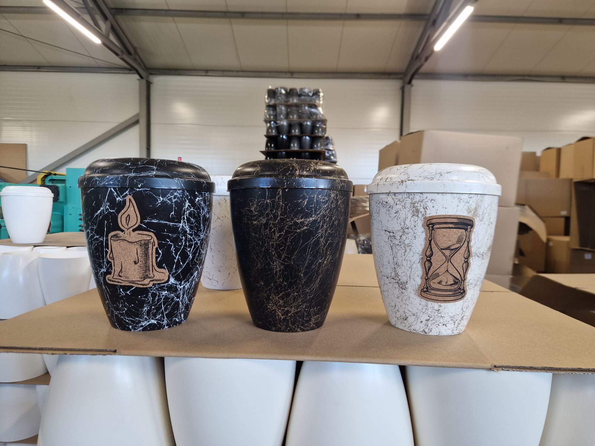 Wszystkie urny powstają na naszych maszynach i są dostępne wyłącznie u nas oraz u naszych partnerów – hurtowni funeralnych w Polsce. Dzięki temu nasi klienci mają pewność, że otrzymują produkty unikalne na rynku. W ofercie posiadamy urny metalowe, plastikowe i biodegradowalne, dostępne od ręki.